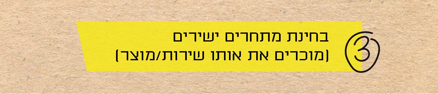אם הלקוח שלי הוא גלידה שכונתית, אני אחפש את מה שהיא מעניקה באופן רגשי לקהל, נניח שהיא מעניקה לקהל 10 דקות של אושר במרחק הליכה מהבית. אני אחפש מה עוד בסביבה נותן את אותם עשר דקות של אושר במרחק הליכה מהבית ואבחן גם את הנראות והאסטרטגיה שלו. גם כאן המידע שנגלה יכול להיות דרך מצויינת להתמקד.