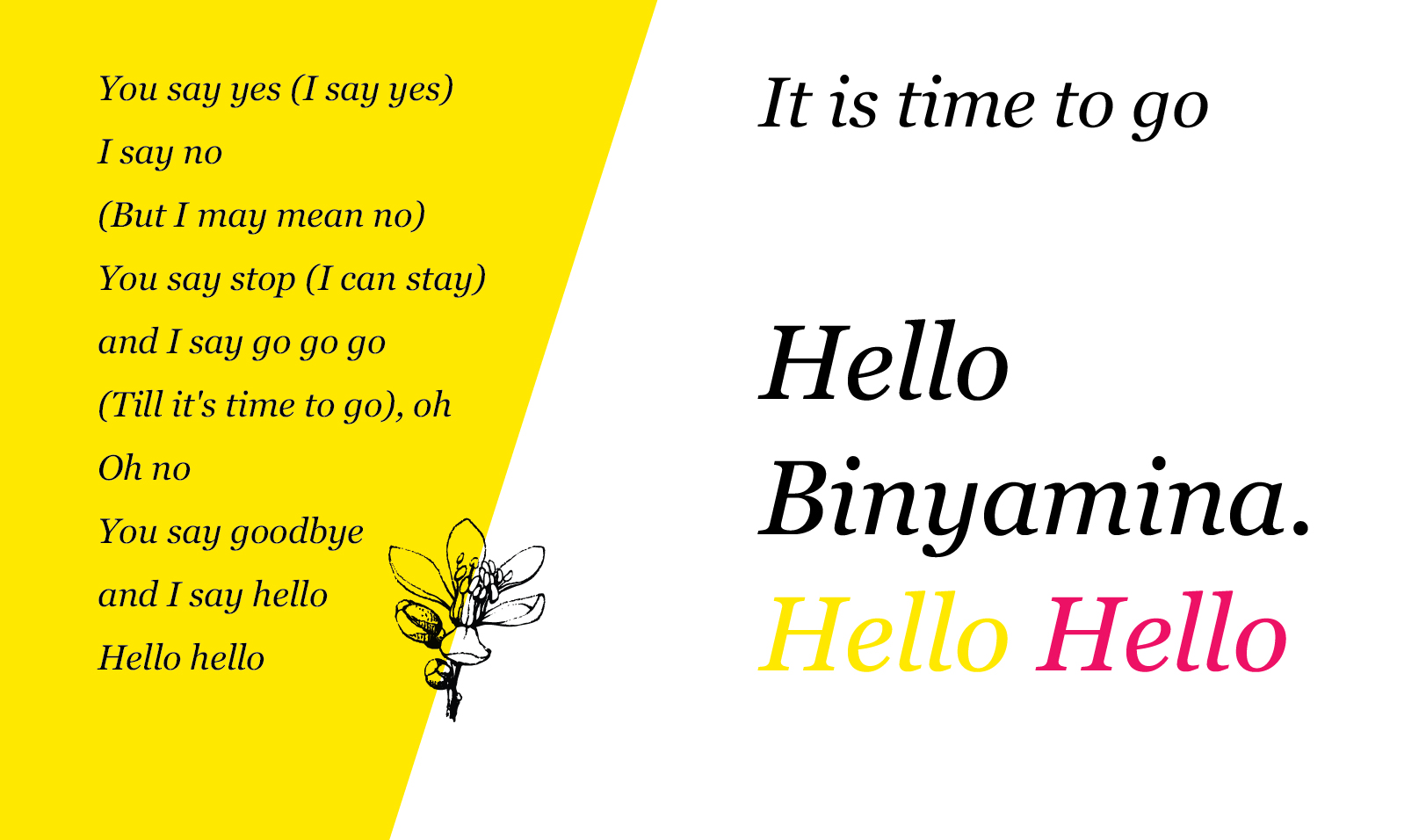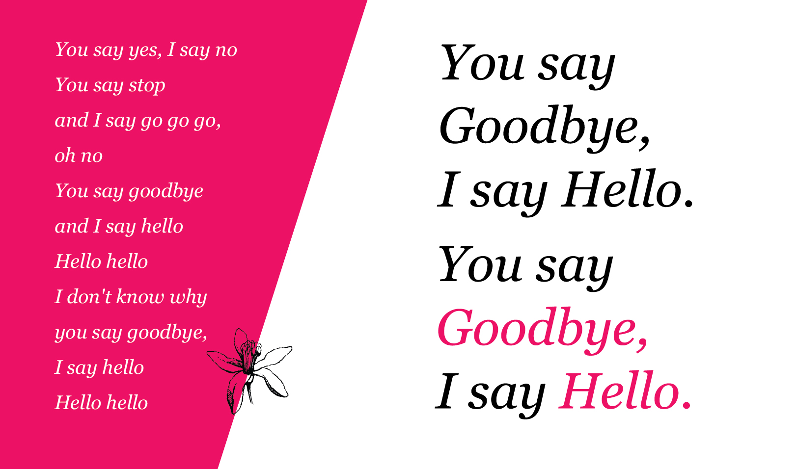 בחרתי לפתוח את הפוסט הזה עם מילים מתוך השיר You Say Goodbye I Say Hello של הביטלס, כי בעיניי הן אומרות הרבה על נקודות מבט בחיים. על איך אפשר להסתכל על רגעים וסיטואציות מזויות שונות ולראות דברים אחרים.